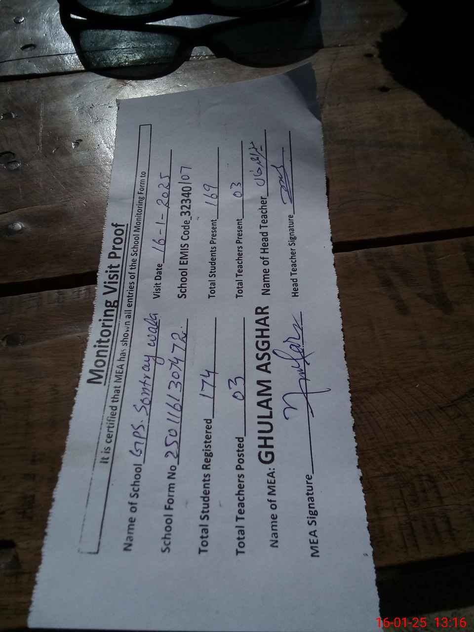 | Attendance Register | Head Teacher | MEA with School | Visit Proof |
