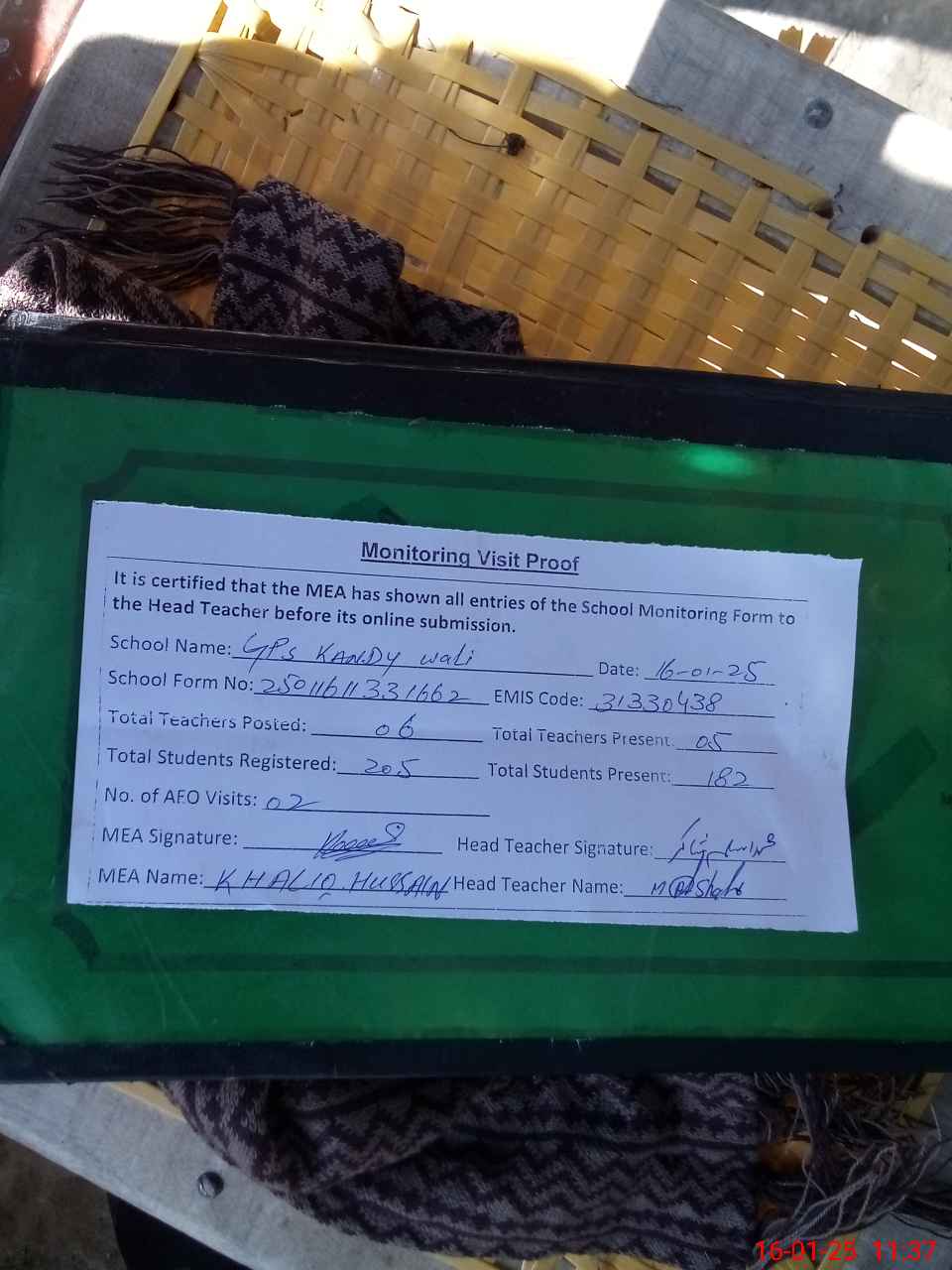 | EMIS Code: 31330438 | Name of School: GPS KANDY WALI | |||