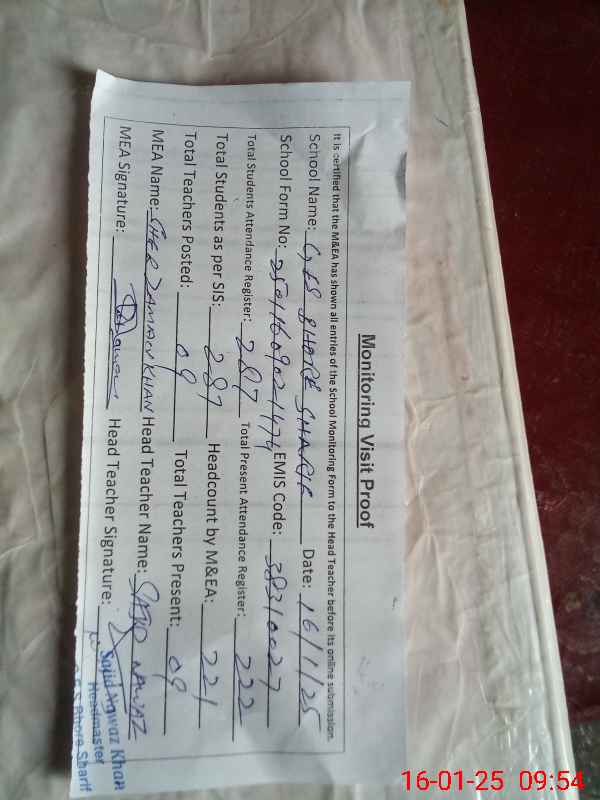 | EMIS Code: 38310027 | Name of School: GES BHORE SHARIF | |||