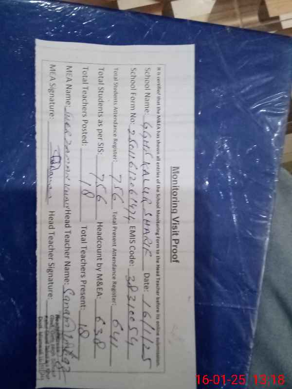 | Attendance Register | Head Teacher | MEA with School | Visit Proof |