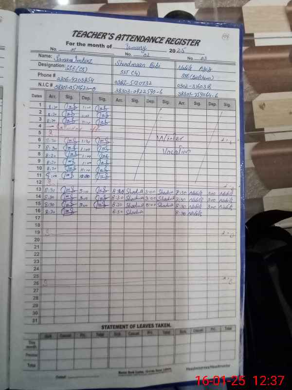 | Name: Sa**** Im**** Designation: (School Headmaster's/Headmistress's) SSE. CS Phone/Cell Number: 03**** |