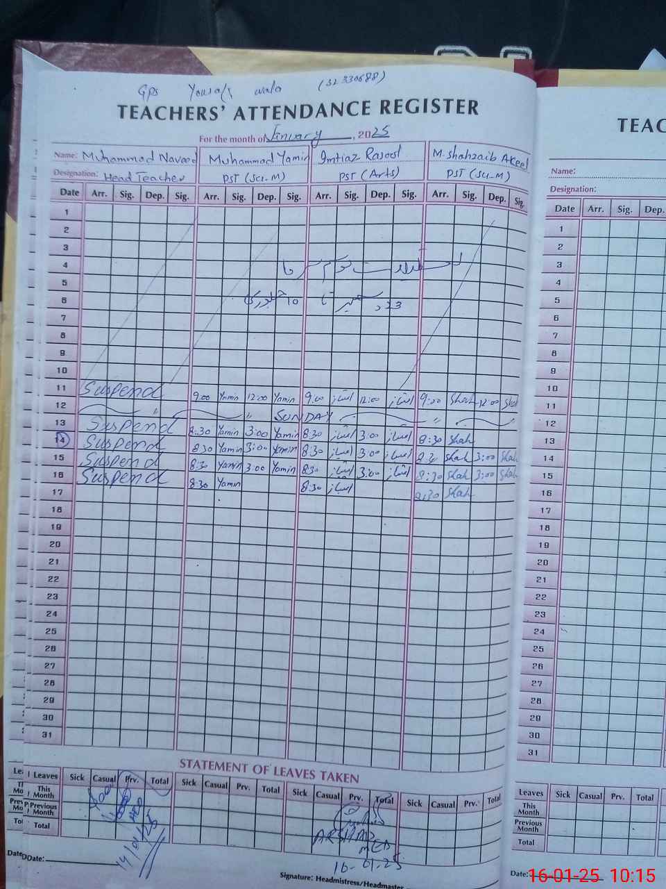| Name: MU**** NA**** Designation: (School Headmaster's/Headmistress's) PST Phone/Cell Number: 03**** |