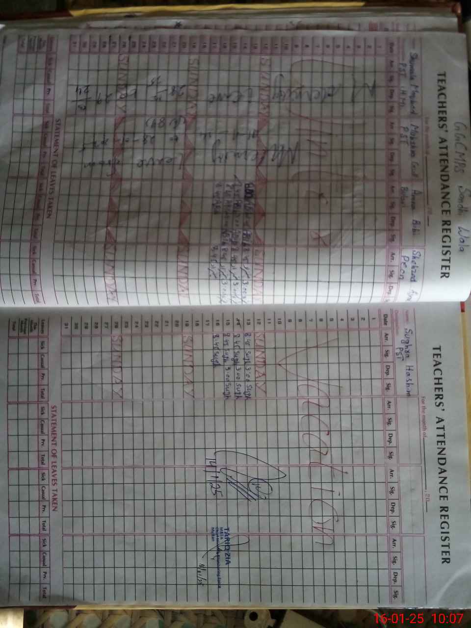 | 36**** | Sh**** Ma**** | PST | Regular | 4 | 0 | 0 | 0 | 0 | 0 | 0 | 0 | 4 | Maternity |