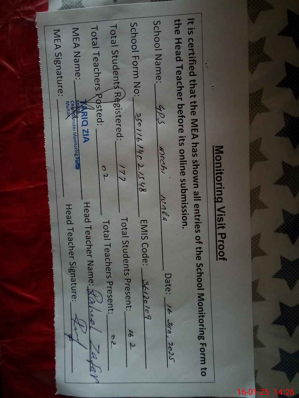 | EMIS Code: 36120109 | Name of School: GPS MOCHI WALA P/O OBAVARA SHUMALI | |||
