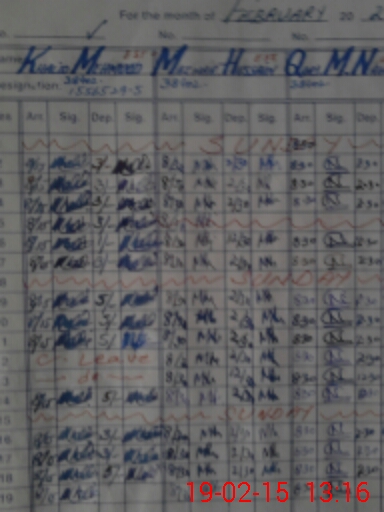 | CNIC | Full Name | Designation | R/C | Absence During Last Calender Month |