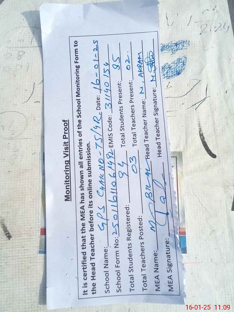 | EMIS Code: 31140154 | Name of School: GPS CHAK NO. 75/4-R | |||
