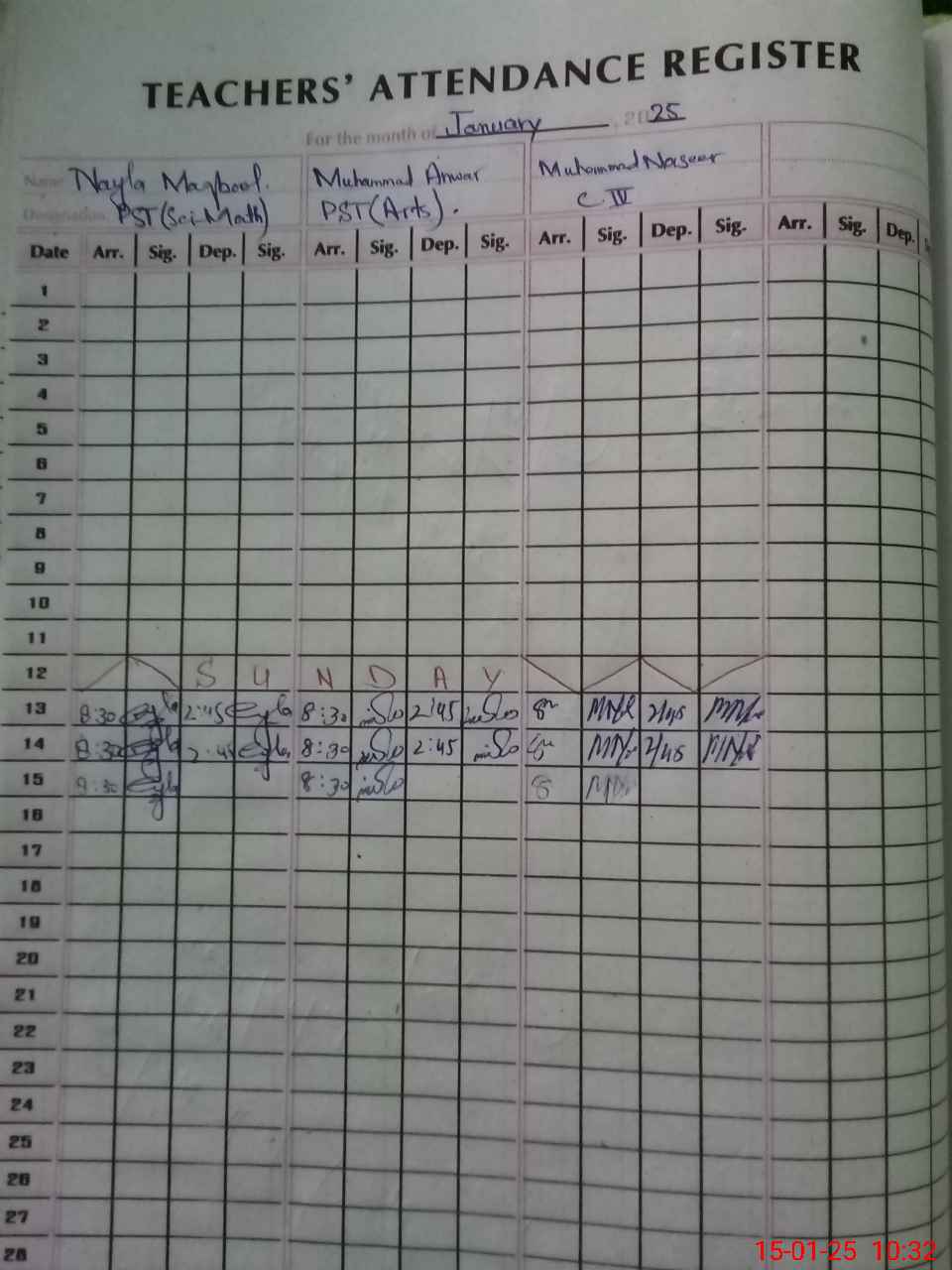 | Name: Na**** Ma**** Designation: (School Headmaster's/Headmistress's) PST (SCI-MATH) Phone/Cell Number: 03**** |