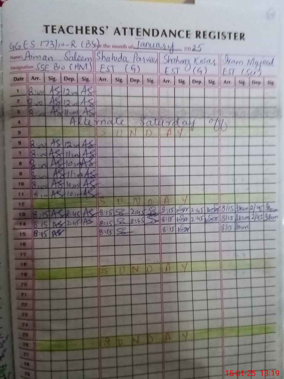 | Name: Ai**** Sa**** Designation: (School Headmaster's/Headmistress's) SSE (Bio Chem) Phone/Cell Number: 03**** |