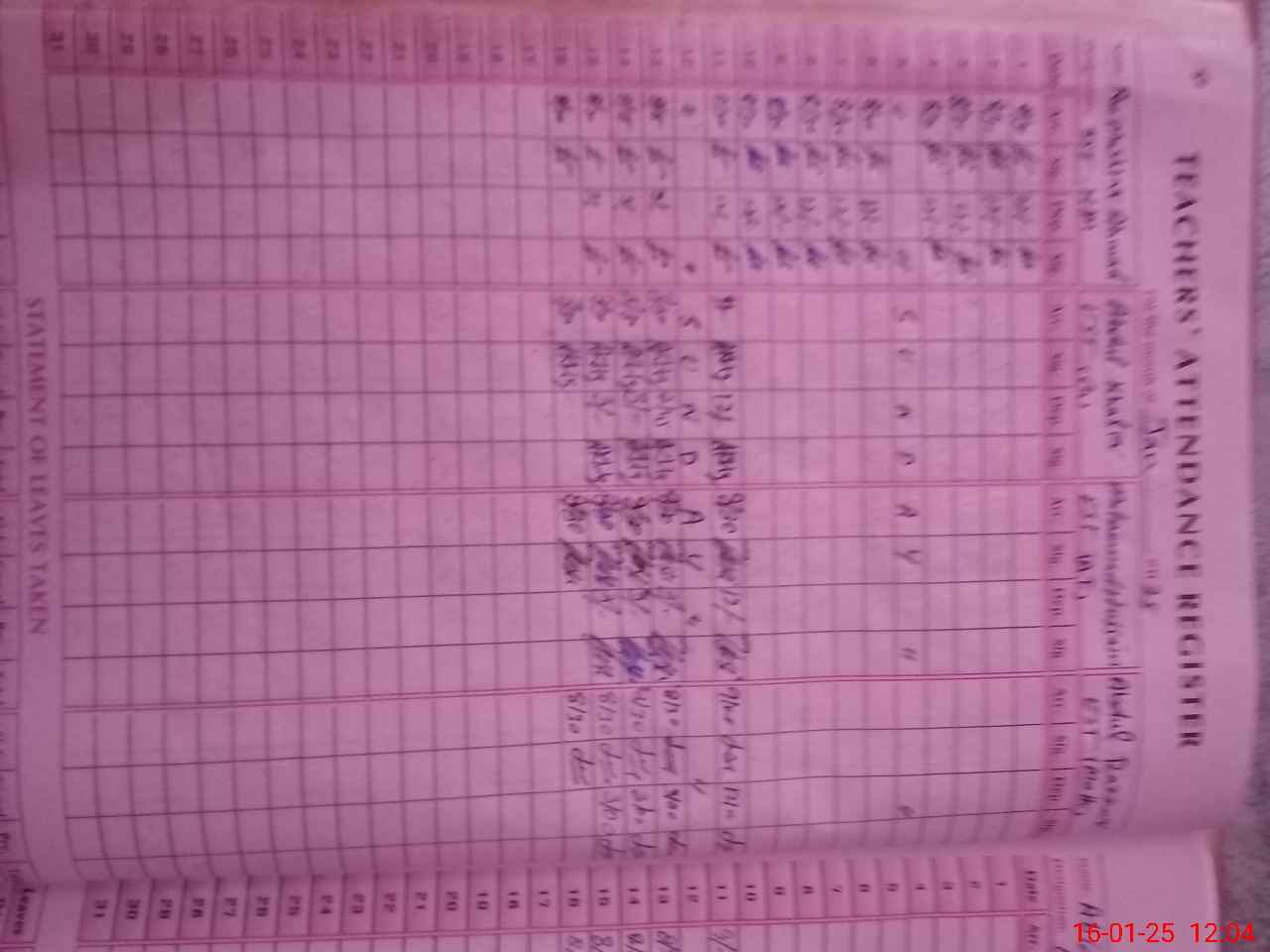 | CNIC | Full Name | Designation | R/C | Absence During Last Calender Month |