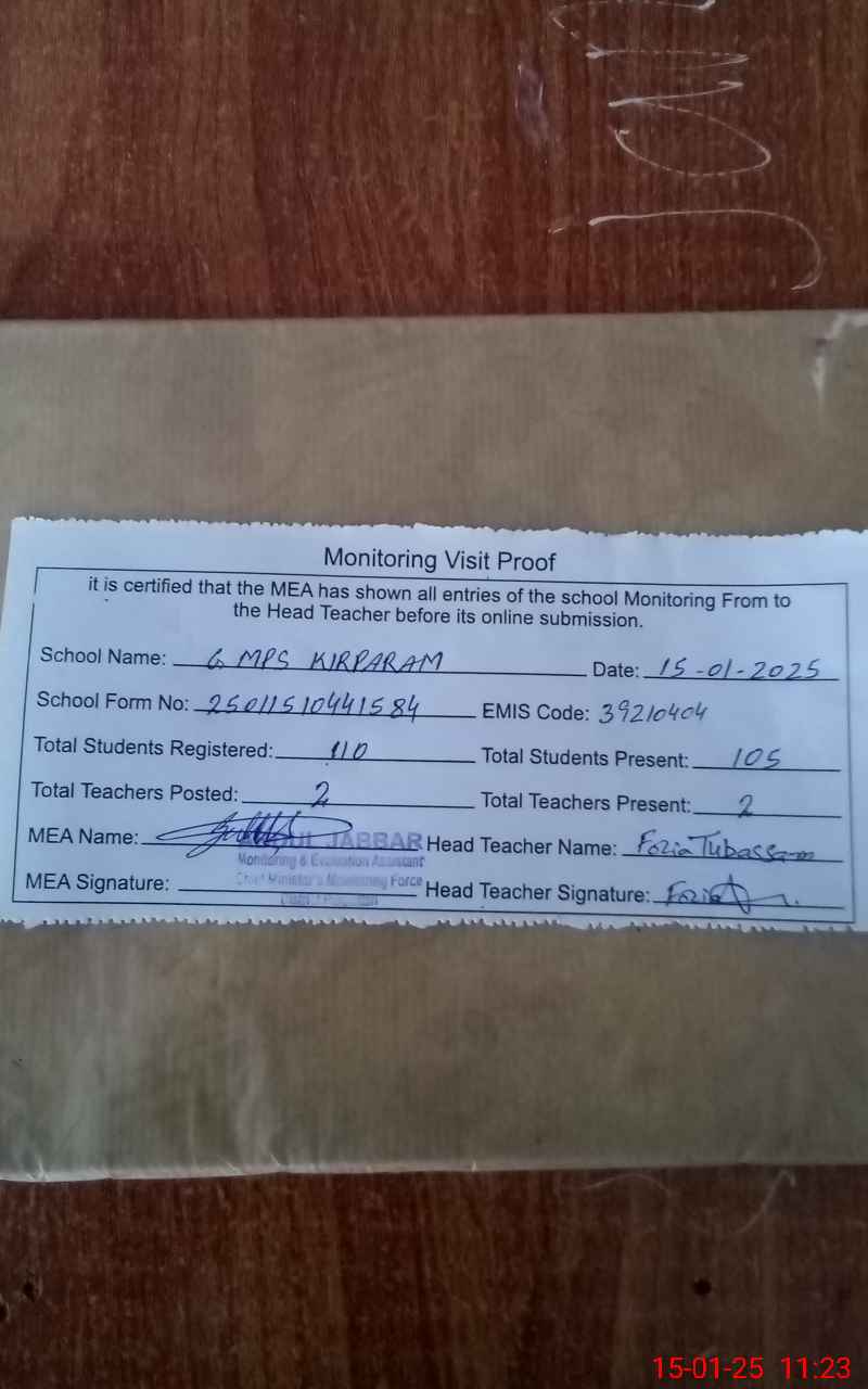 | EMIS Code: 39210404 | Name of School: GMPS KIRPARAM | |||