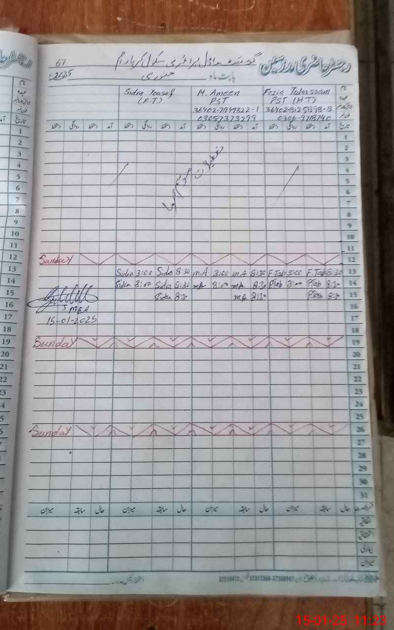 | Name: FO**** TA**** Designation: (School Headmaster's/Headmistress's) PST Phone/Cell Number: 03**** |