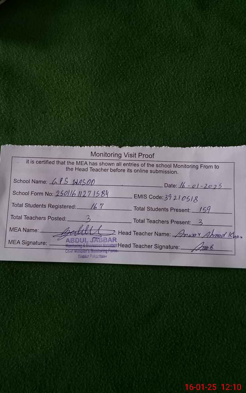 | EMIS Code: 39210518 | Name of School: GPS WASOO | |||