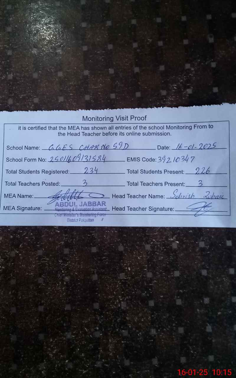 | EMIS Code: 39210347 | Name of School: GGES CHAK NO. 59 D | |||