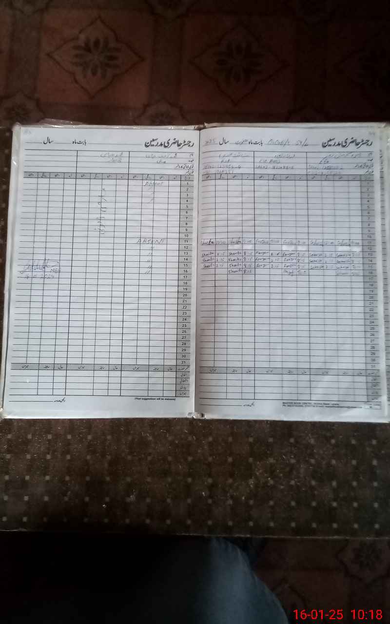 | CNIC | Full Name | Designation | R/C | Absence During Last Calender Month |