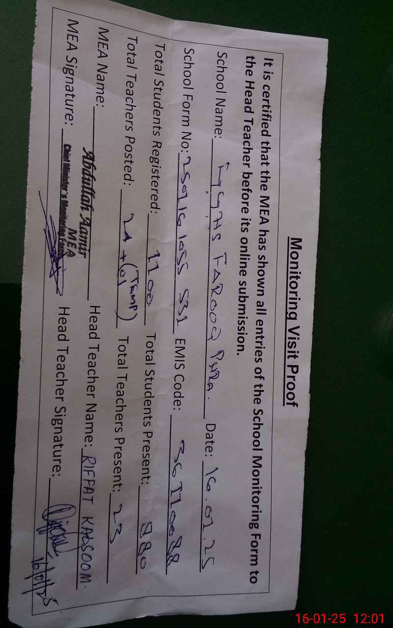 | Attendance Register | Head Teacher | MEA with School | Visit Proof |