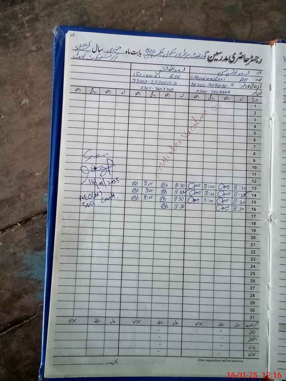 | Remarks (Use Separate Page if Required): Students attendance list not updated accordingly by pmiu two years old list given for attendance where as these students left the school | |||||