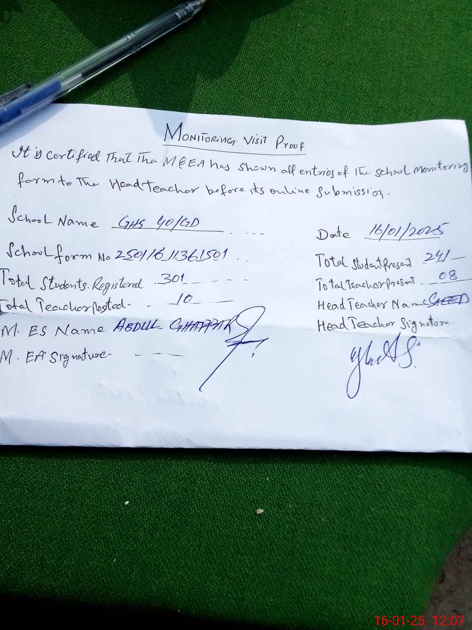 | EMIS Code: 39320080 | Name of School: GHS 40/G.D | |||