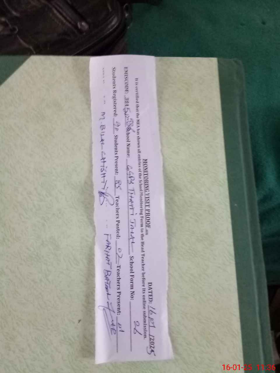 | Attendance Register | Head Teacher | MEA with School | Visit Proof |