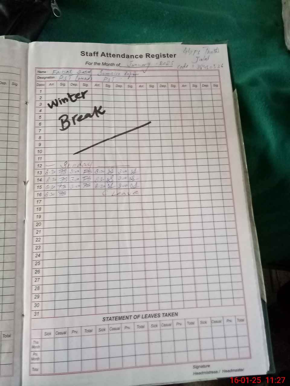 | 38**** | Su**** Ra**** | PST | Regular | 1 | 0 | 0 | 0 | 0 | 0 | 0 | 0 | 1 | Absent (Un-Authorized) |