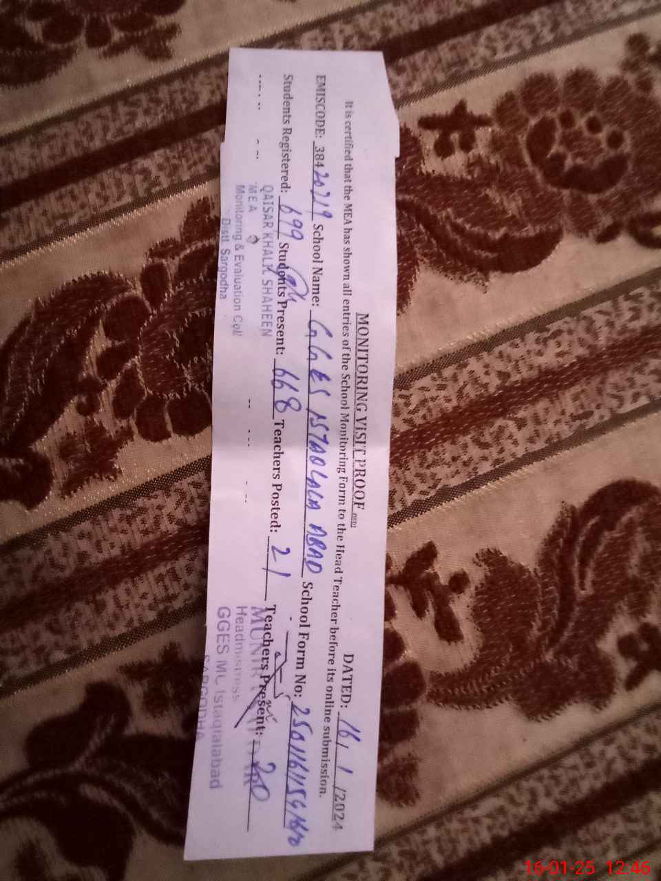 | EMIS Code: 38420219 | Name of School: GGES MC ISTAQLAL ABAD SARGODHA | |||