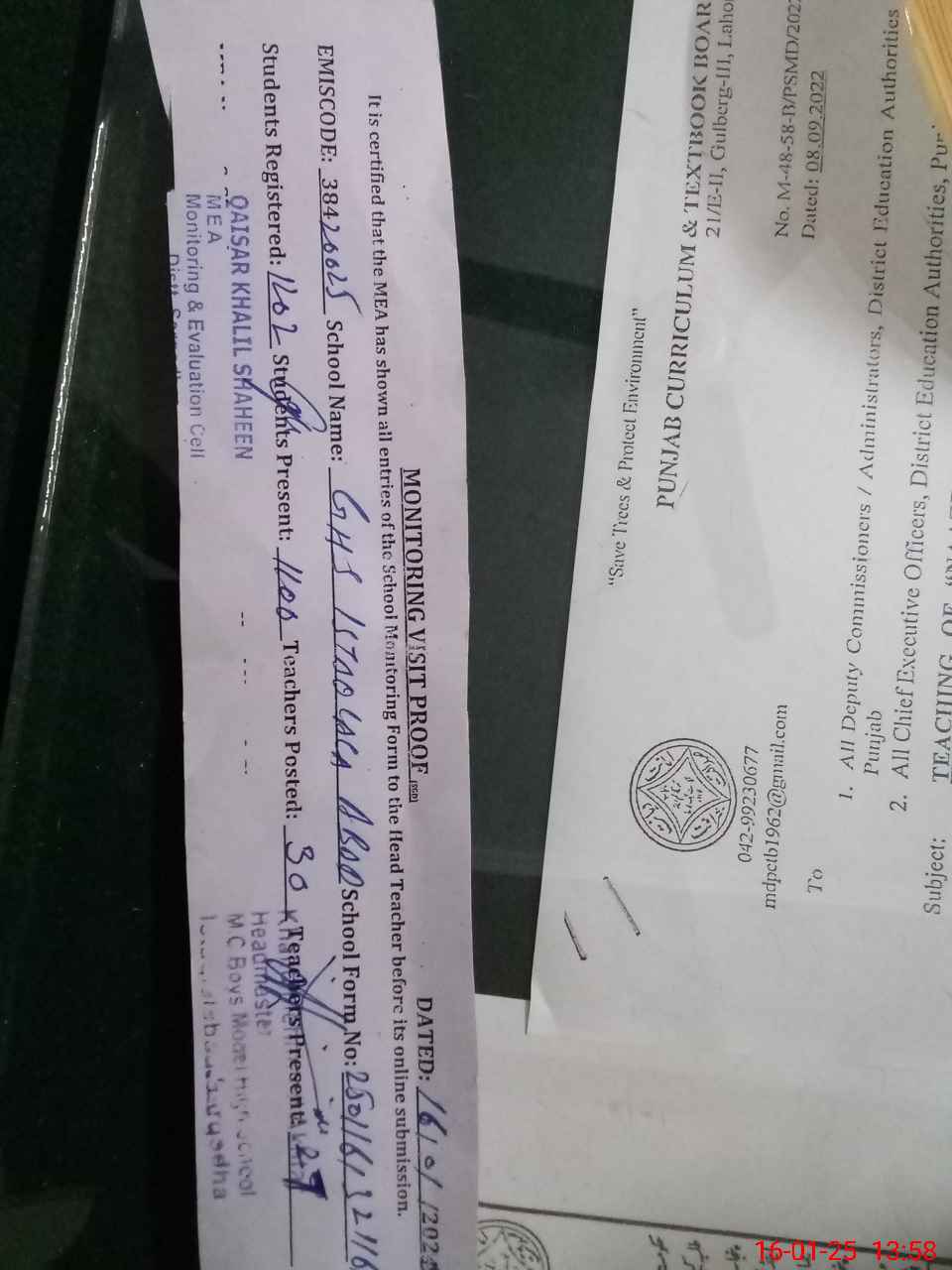 | EMIS Code: 38420025 | Name of School: GHS MC ISTAQLAL ABAD SARGODHA | |||