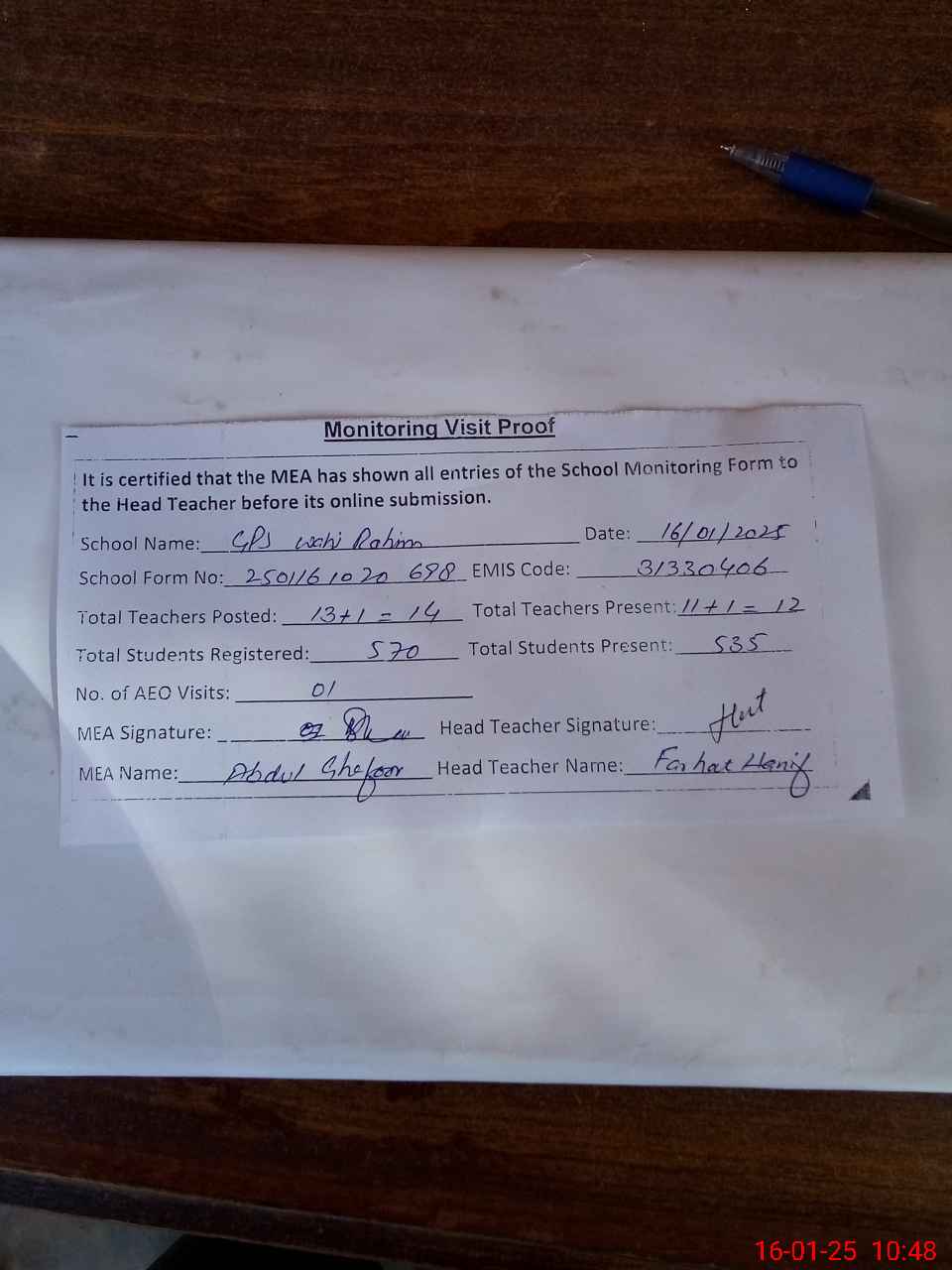 | EMIS Code: 31330406 | Name of School: GPS WAHI RAHIM | |||