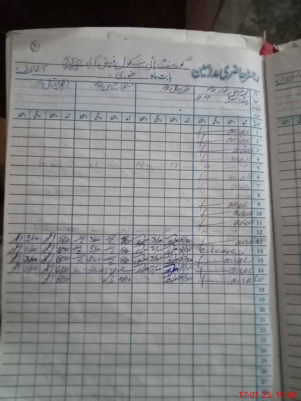 | CNIC | Full Name | Designation | R/C | Absence During Last Calender Month |