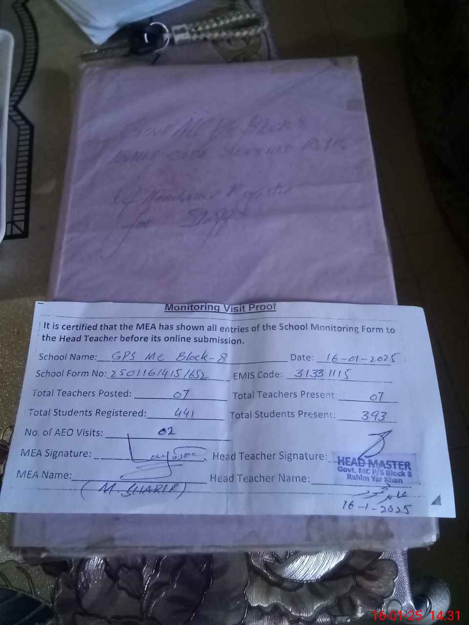 | EMIS Code: 31331115 | Name of School: GPS MC BLOCK NO. 8 THALI ROAD | |||