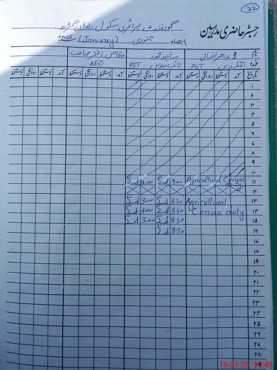 | CNIC | Full Name | Designation | R/C | Absence during last cal. month |
