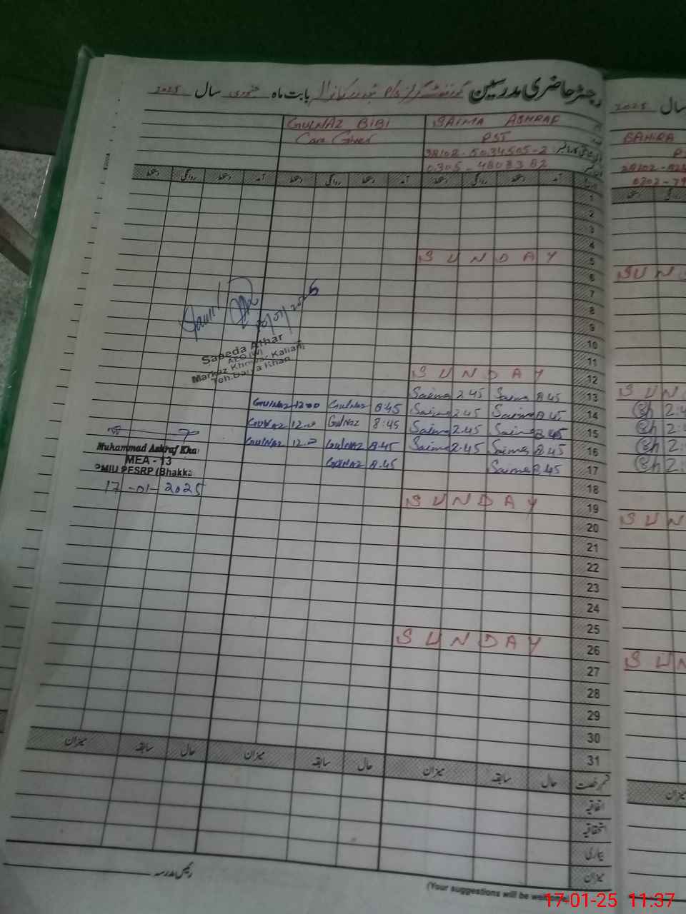 | Name: SA**** HA**** Designation: (School Headmaster's/Headmistress's) PST Head Phone/Cell Number: 03**** |