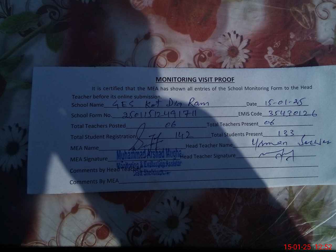 | EMIS Code: 35430126 | Name of School: GES KOT DIYA RAM | |||