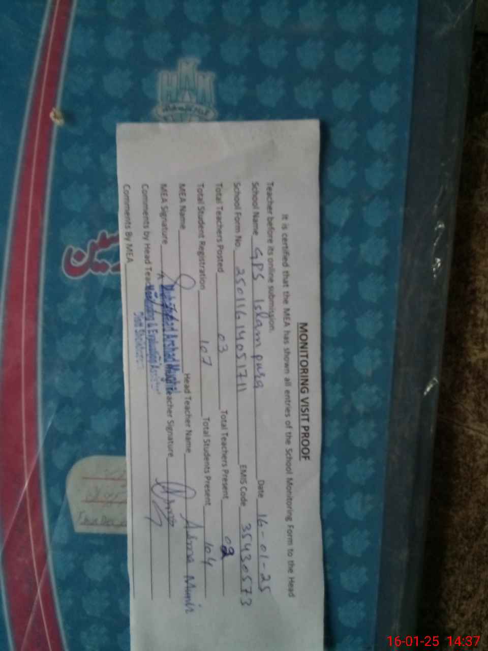 | EMIS Code: 35430573 | Name of School: GPS ISLAM PURA | |||