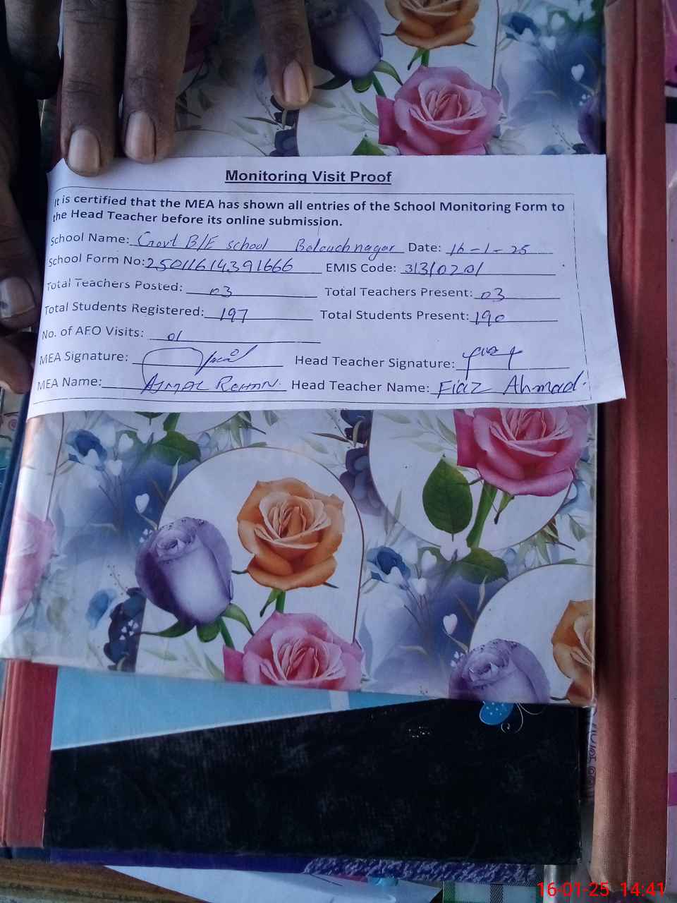 | EMIS Code: 31310201 | Name of School: GPS BALUCH NAGAR (After Noon) | |||