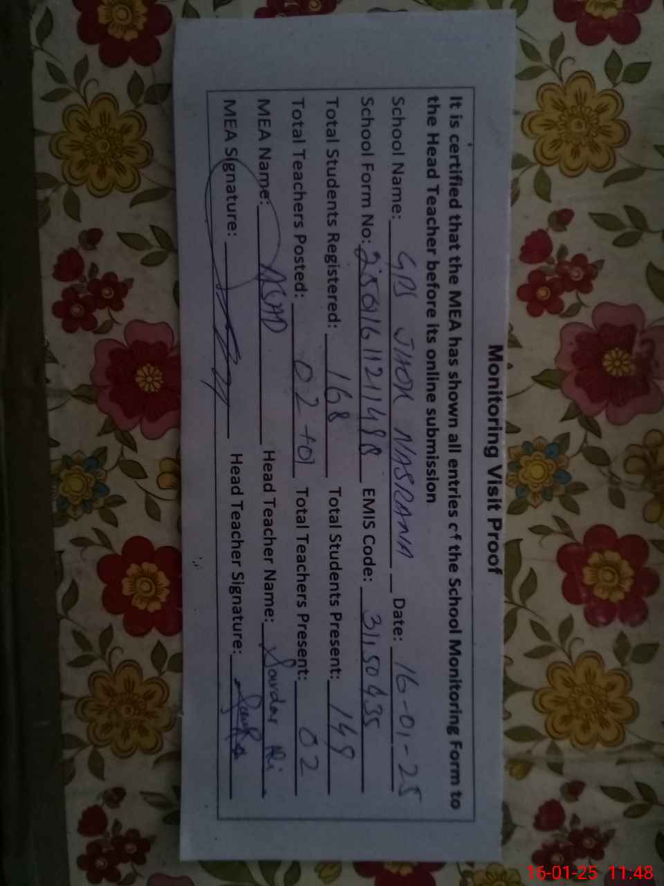 | EMIS Code: 31150435 | Name of School: GPS JHOK NASRANA | |||