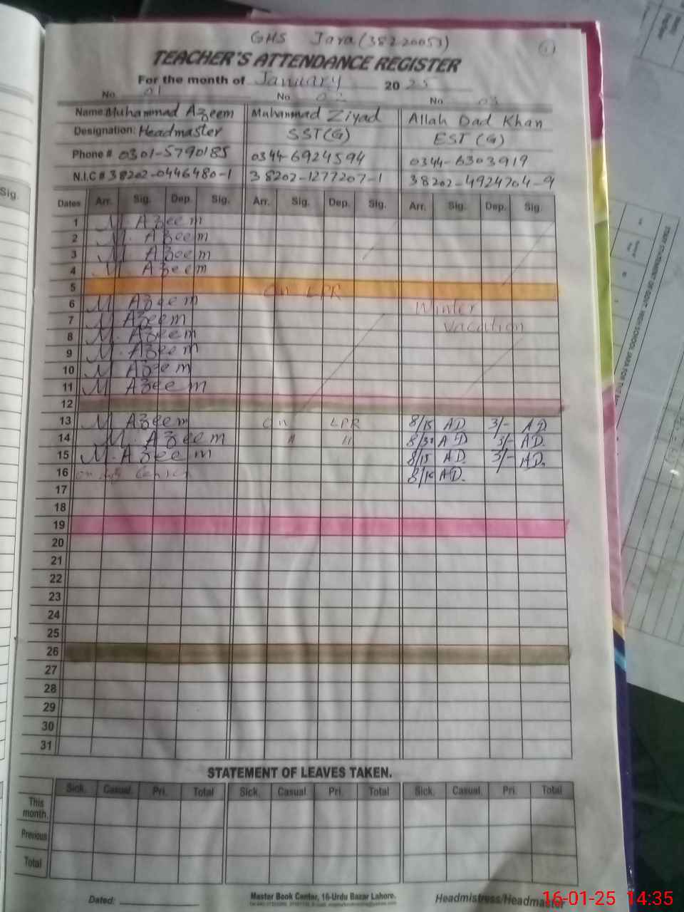 | Name: Mu**** Az**** Designation: (School Headmaster's/Headmistress's) Headmaster Phone/Cell Number: 03**** |