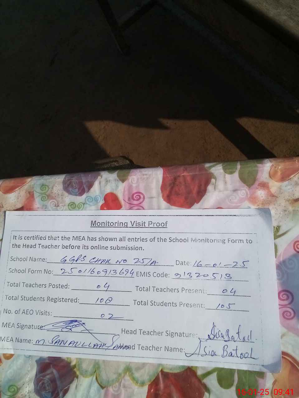 | EMIS Code: 31320513 | Name of School: GGPS CHAK NO.25/A | |||