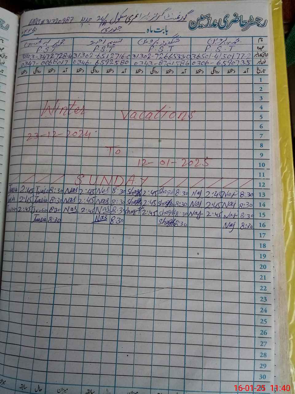 | Name: NA**** PA**** Designation: (School Headmaster's/Headmistress's) PST Phone/Cell Number: 03**** |