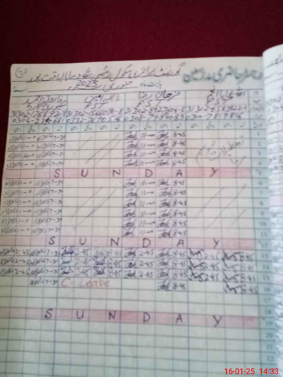 | CNIC | Full Name | Designation | R/C | Absence During Last Calender Month |