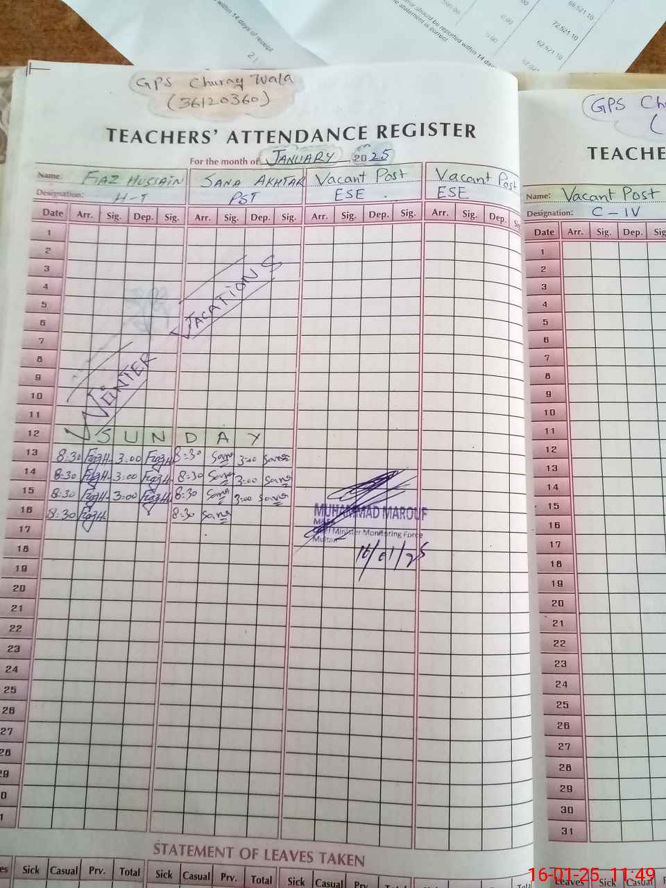| EMIS Code: 36120360 | Name of School: GPS CHURAY WALA SHUJA ABAD | |||