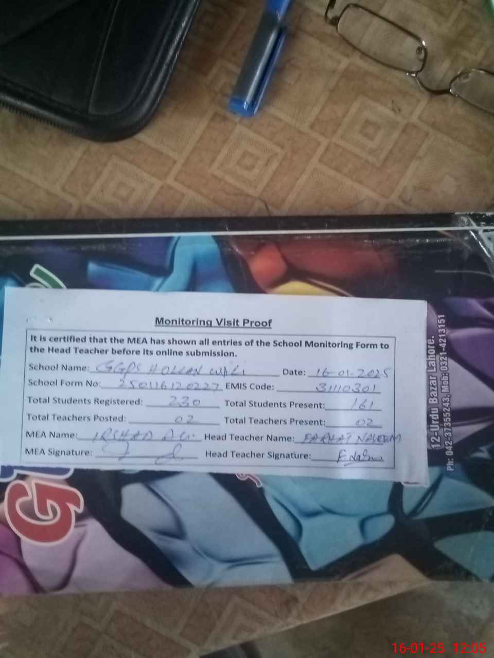 | EMIS Code: 31110301 | Name of School: GGPS HOOLAN WALI | |||