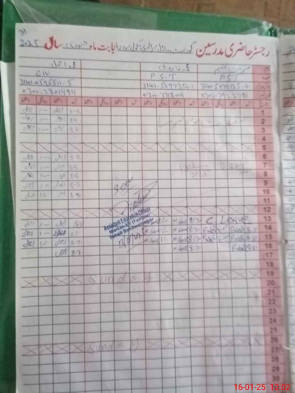 | District: BAHAWALNAGAR | Tehsil: BAHAWALNAGAR | Markaz: BWN.15-FEMALE | Level: Primary | |