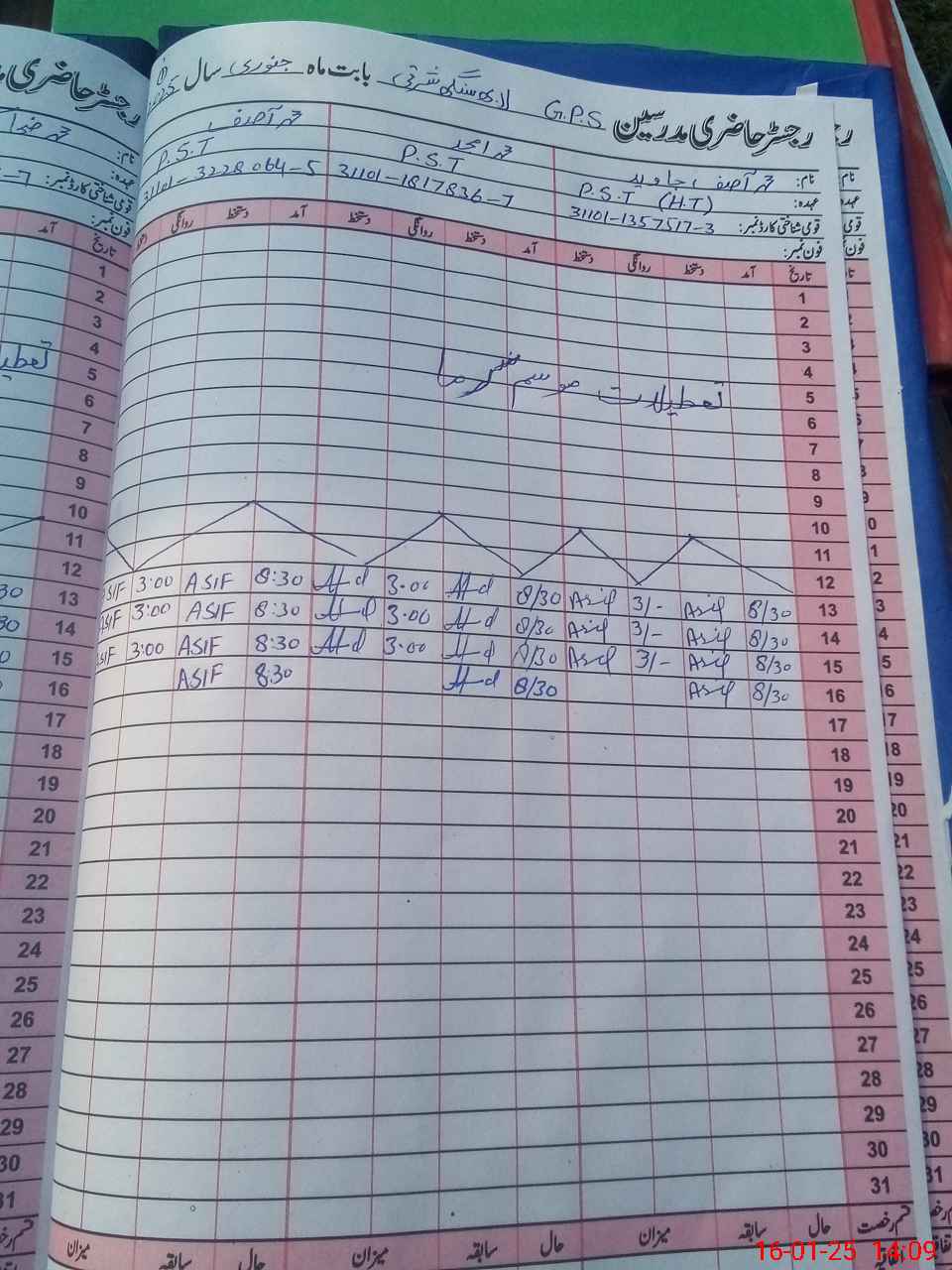 | CNIC | Full Name | Designation | R/C | Absence during last cal. month |