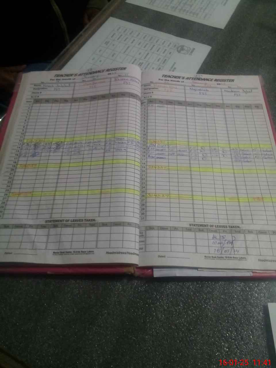 | CNIC | Full Name | Designation | R/C | Absence During Last Calender Month |