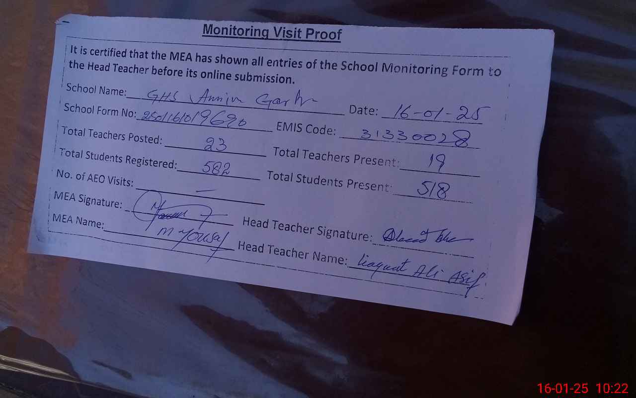 | EMIS Code: 31330028 | Name of School: GHS AMIN GARH | |||
