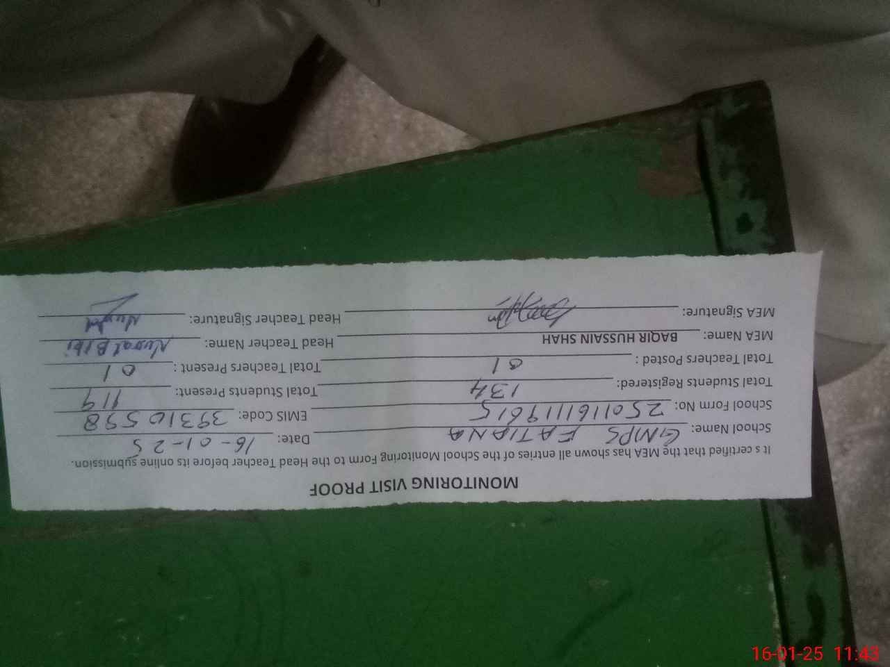 | Name: Nu**** Bi**** Designation: (School Headmaster's/Headmistress's) PST Phone/Cell Number: 03**** |