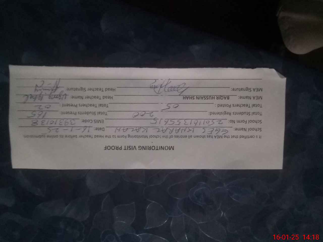 | Name: Uz**** Iq**** Designation: (School Headmaster's/Headmistress's) Sst Phone/Cell Number: 03**** |