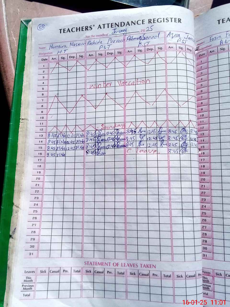 | Leave | Duty | Absent | Maternity | Medical | Ex- Pak |