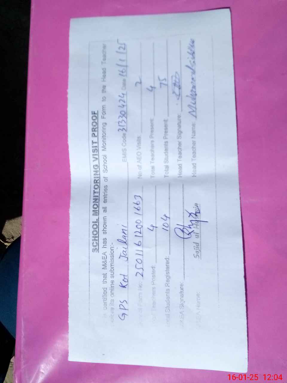 | EMIS Code: 31330424 | Name of School: GPS KOT JAILANI | |||