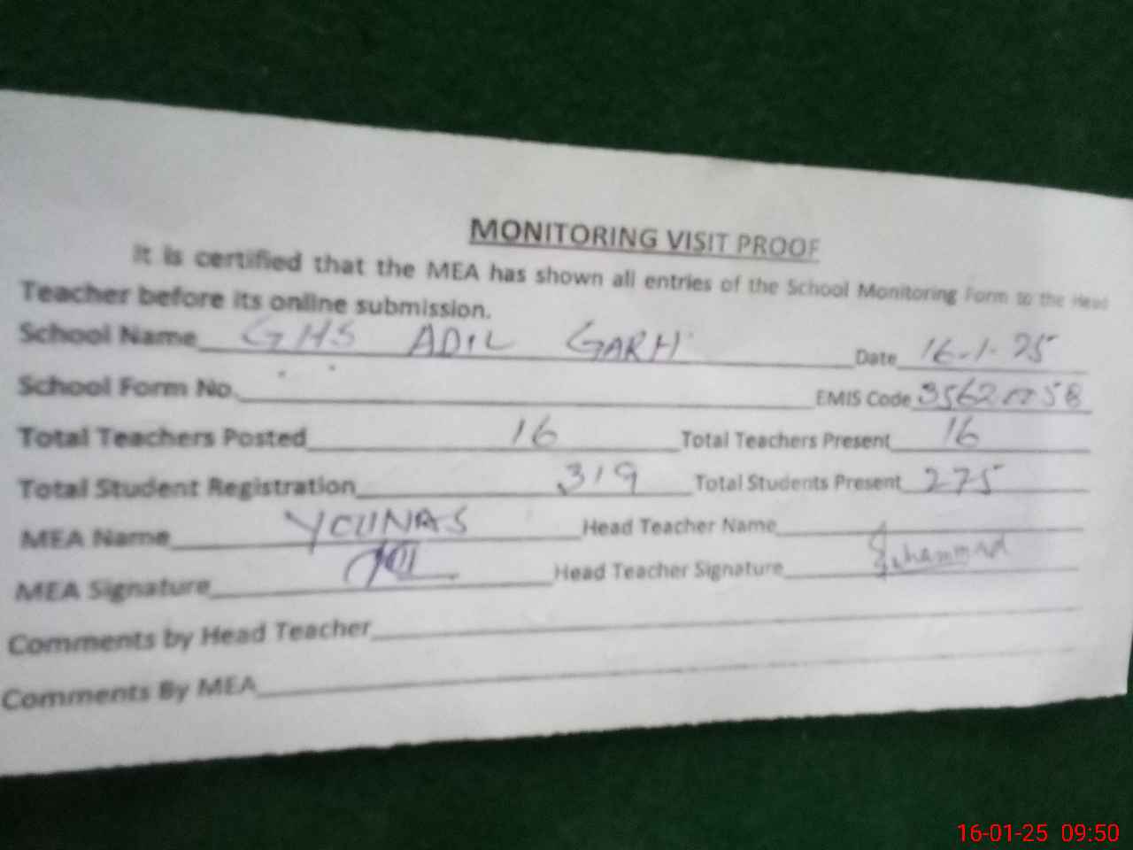 | EMIS Code: 35620058 | Name of School: GHS ADIL GHAR | |||