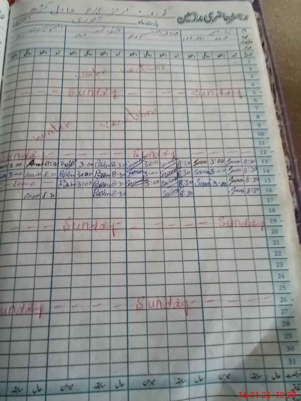 | Leave | Duty | Absent | Maternity | Medical | Ex- Pak |